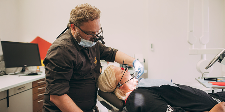 Wurzelbehandlung bei Zahngesundheit Baden-Baden: Endodontie-Spezialist Dr. Euchner nutzt 3D-Bildgebung und elektrische Längenmessung. Schildertechnik ermöglicht oft Behandlung in einer Sitzung. Schmerzarm dank lokaler Anästhesie und Lachgas. Gründliche Reinigung für langfristigen Zahnerhalt.