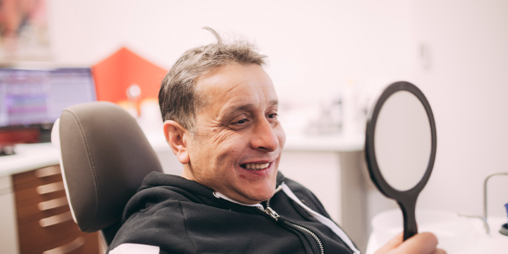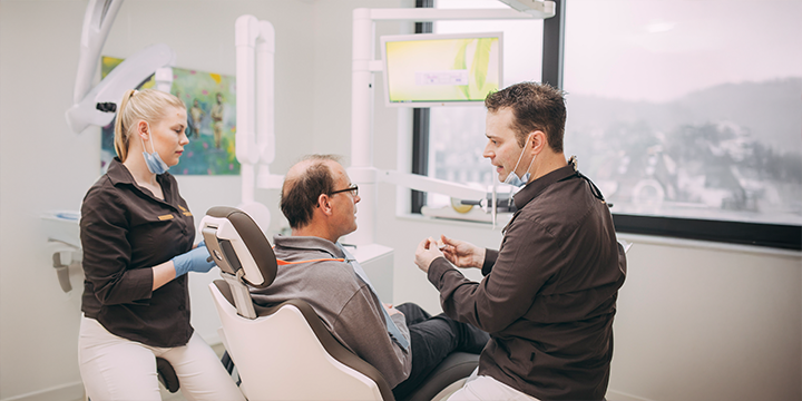 Feste Zähne an einem Tag bei Zahngesundheit Baden-Baden: Innovative Implantation mit 4-6 Implantaten. 3D-Planung für optimale Positionierung. Sofortversorgung für zahnlose Patienten oder bei drohendem Zahnverlust.
